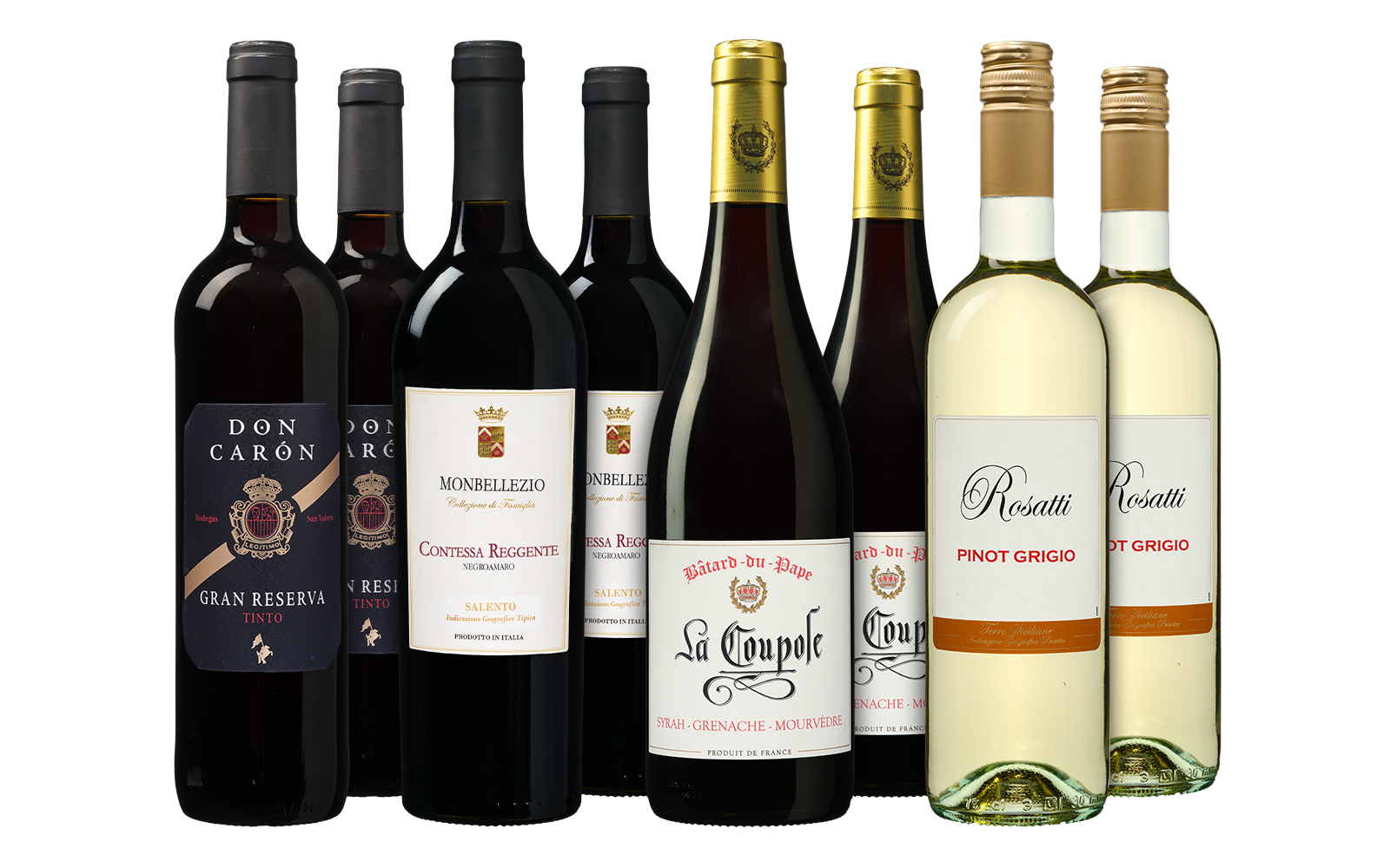In dit 80+ pakket vind je alleen wijnen met 80 punten of méér. Acht flessen uitstekende wijn in rood en wit uit Italië, Spanje en Frankrijk. Veel lekkers voor weinig!