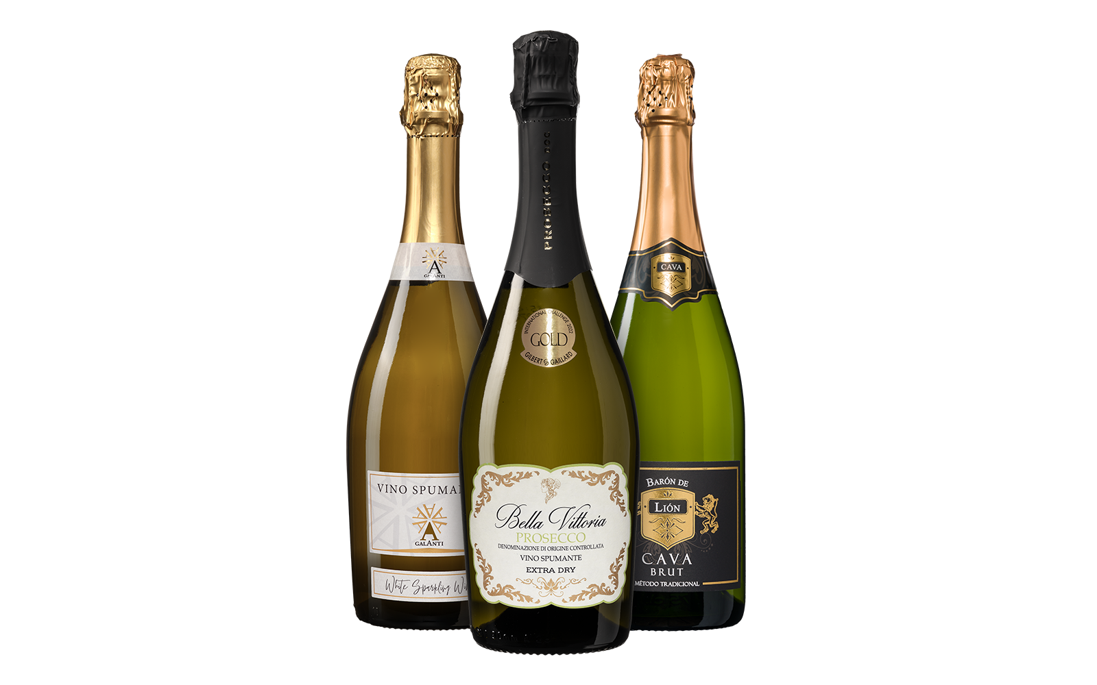 Geniet van een een frisse Cava vol impressies van limoen en grapefruit, een Spumante met een fijne bubbel en een Prosecco's vol appel en peer. Proost!