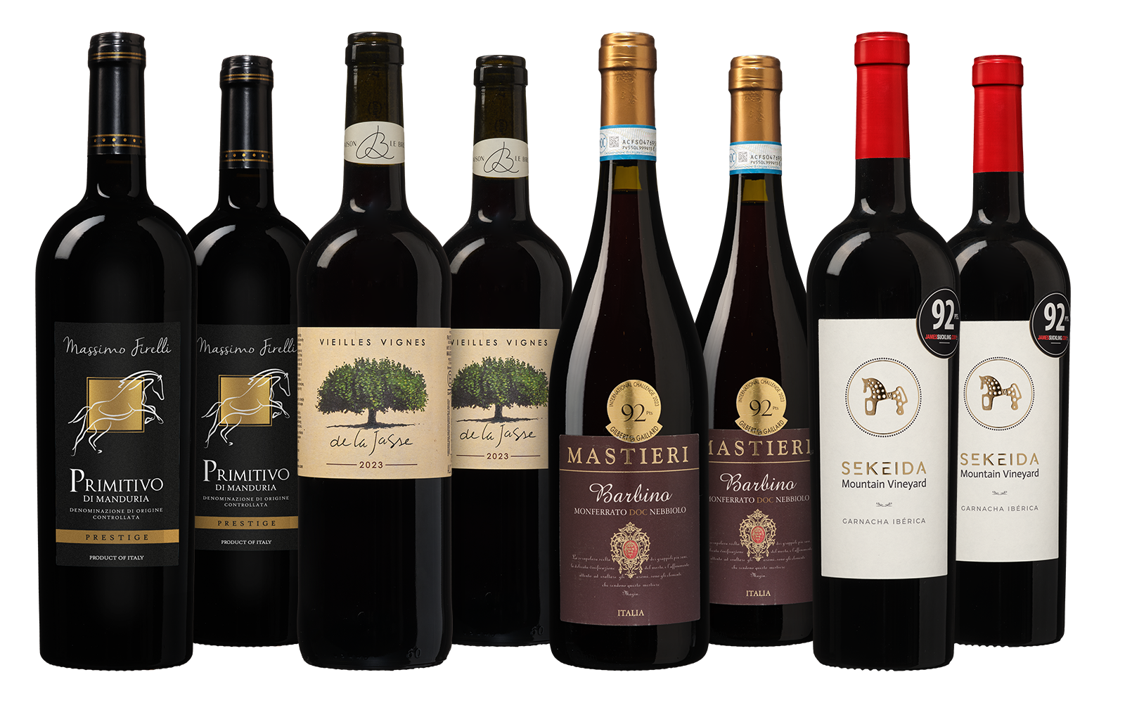 Zin in een stevig glas rood? Dan kan je dit wijnpakket vol krachtige rode wijnen uit Zuid-Europa zeker waarderen. Stuk voor stuk heerlijk bij gegrild of gestoofd vlees.