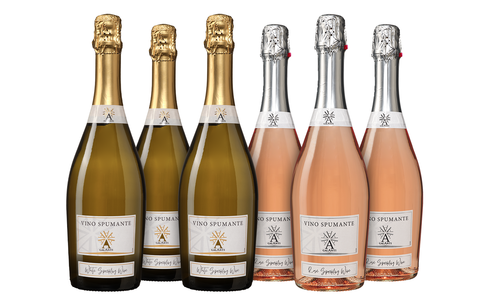 Wie wordt er nu niet vrolijk van een glas bubbels? Geniet van een Spumante Bianco vol frisse aroma's van peer, appel en citrus en een Spumante Rosé vol aardbei, framboos en besjes!