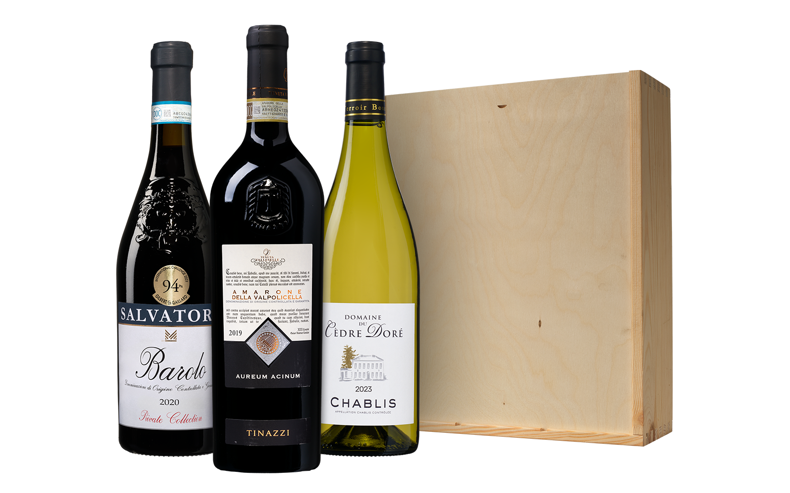 Ontdek nu onze kist met 3 luxe wijnen! De kist is gevuld met twee rode wijnen en 1 witte wijn. Stuk voor stuk wijnen die een cadeautje zijn voor je smaakpapillen!
