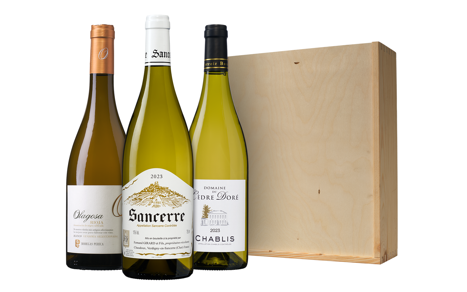 Drie witte koningen op kist: een op eiken vertroetelde witte Rioja, een knapperig frisse en mineraalrijke Sancerre en een rijke en fruitige Chablis. Top wijnen!